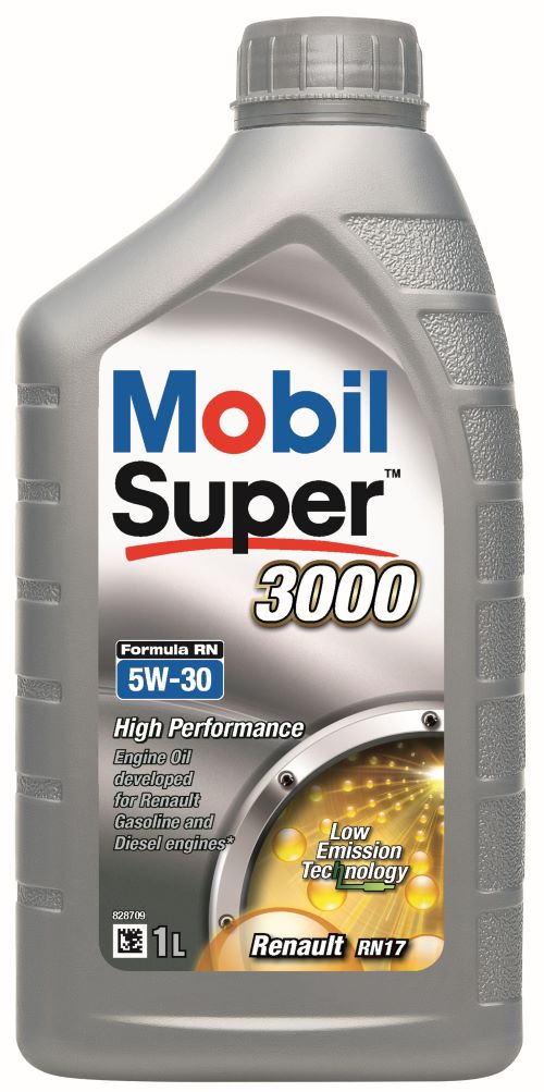 A Mobil Super™ 3000 Formula RN 5W-30 egy szintetikus, nagy teljesítményű, alacsony hamutartalmú motorolaj, amelyet kifejezetten úgy fejlesztettek ki, hogy megfeleljen a Renault legújabb RN17 specifikációjának. Különösen alkalmas a 2018 közepe után forgalomba került, részecskeszűrővel felszerelt benzin- és dízelmotoros járművekhez, hozzájárulva a kipufogógáz-kibocsátás csökkentő rendszerek élettartamának növeléséhez és hatékonyságuk megőrzéséhez. A Mobil Super™ 3000 Formula RN 5W-30 motorolajat kifejezetten úgy tervezték, hogy megfeleljen a Renault RN17 specifikációjának, és alkalmas a legújabb Renault gyártmányú, részecskeszűrővel felszerelt benzin- és dízelmotoros járművekhez. Az RN17 szabvány visszafelé is kompatibilis a régebbi RN0700 és RN0710 specifikációkkal, így a Mobil Super 3000 Formula RN 5W-30 a Renault személyautók túlnyomó többsége számára megfelelő választás. Specifikációk és jóváhagyások ACEA: C3 Renault: RN17 MB-Approval 226.52